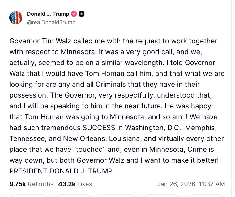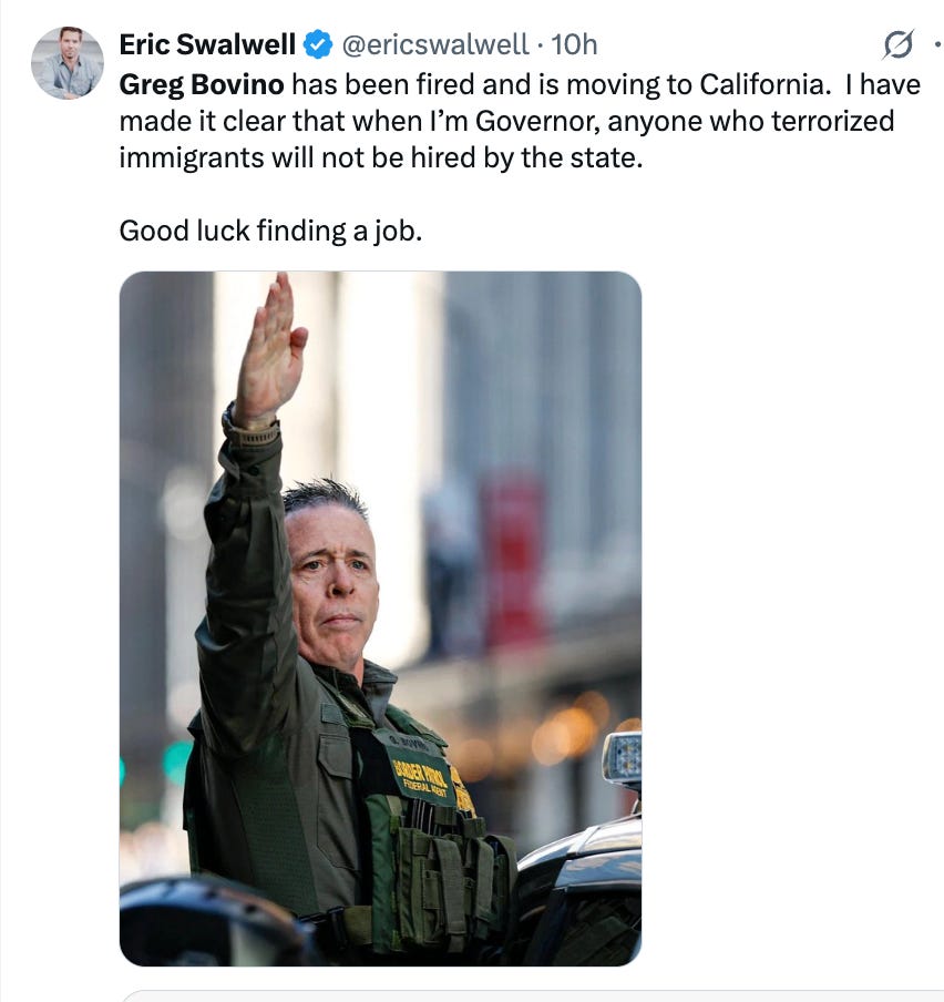 In a win for the people of Minnesota, the Trump Administration announced that Greg Bovino, the commander-at-large for Customs and Border Protection, is being reassigned to his previous position of commander in El Centro, California. Some media are reporting that he’ll be retiring soon. And in a fate worse than death for Trump officials, they’ve reportedly cut off Bovino’s official social media access.