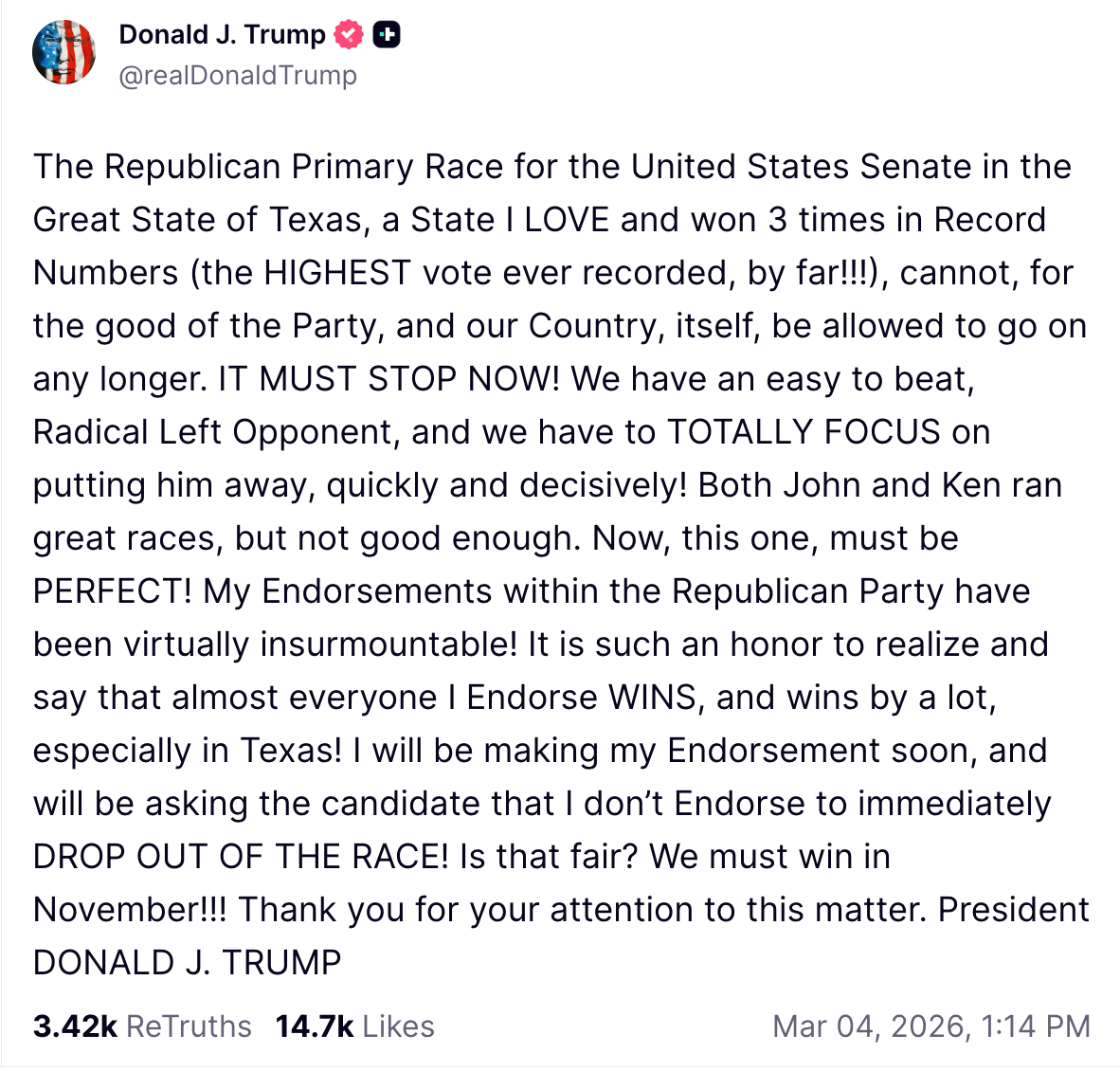 They focused on Texas, where Republicans are heading to a lengthy and very expensive runoff election between incumbent Senator John Cornyn and Texas Attorney General Ken Paxton. Meanwhile, Democrats are coalescing around their nominee, state Rep. James Talarico.