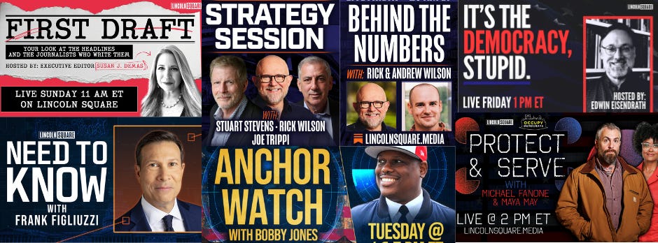 12:00 PM ET Stuart Stevens sits down with Simon Rosenberg—only on Lincoln Square!