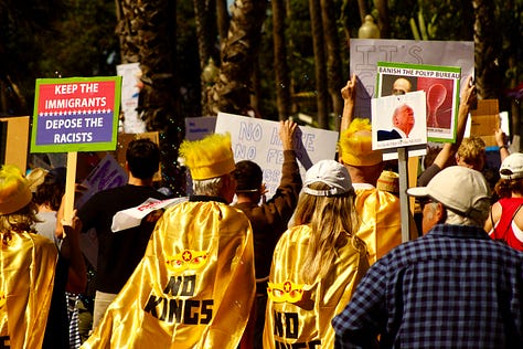 The message at the roughly 2,700 demonstrations across the country on Saturday was clear: No thrones. No crowns. No Kings. Ever. And that message was delivered with joy, music, dancing, costumes, and camaraderie.