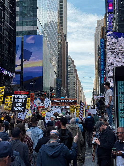 More than 100,000 New Yorkers gathered for the second No Kings protest. Lincoln Square’s C.J. Penneys and Josh Friday, as well as Brandon Graeter from The Lincoln Project, were in Times Square for the massive demonstration.