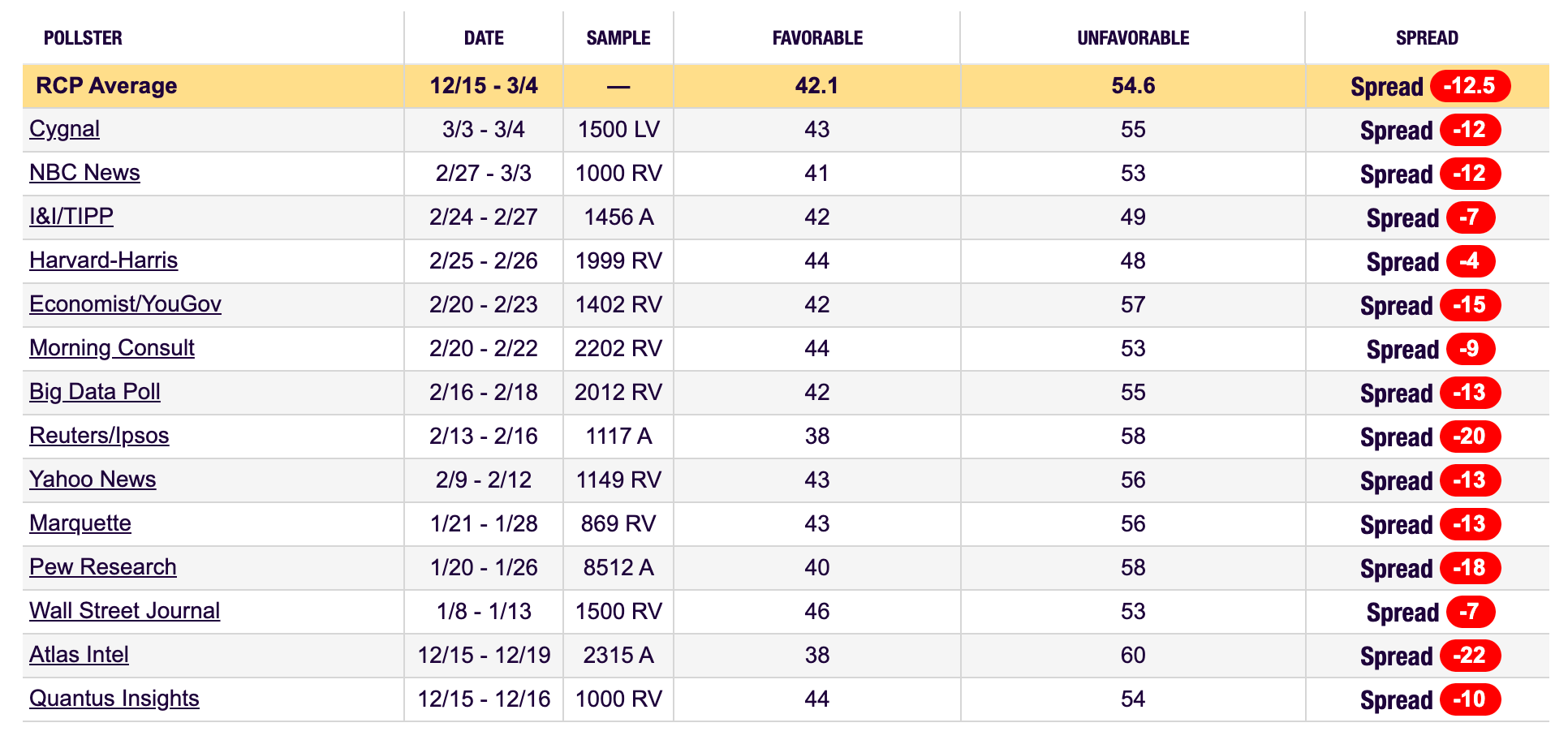 Andrew and Rick take a deep dive into the Real Clear Politics average on Trump’s favorability and it’s just a sea of red. And as Rick points out, these numbers don’t even reflect the retaliation from Iran. “When you look at those dates on those surveys, almost none of those have reflected the gas price jump that we’ve experienced in the last four to five days.”