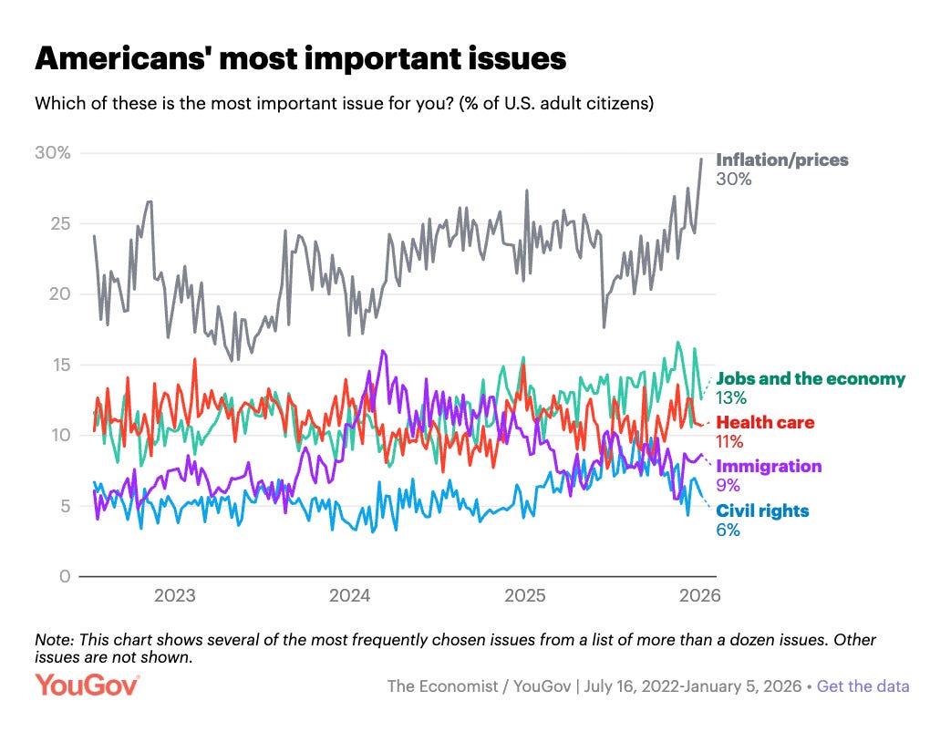 Combined, inflation/prices & jobs and the economy are the top issues for nearly half of Americans. Immigration? Less than 10%.