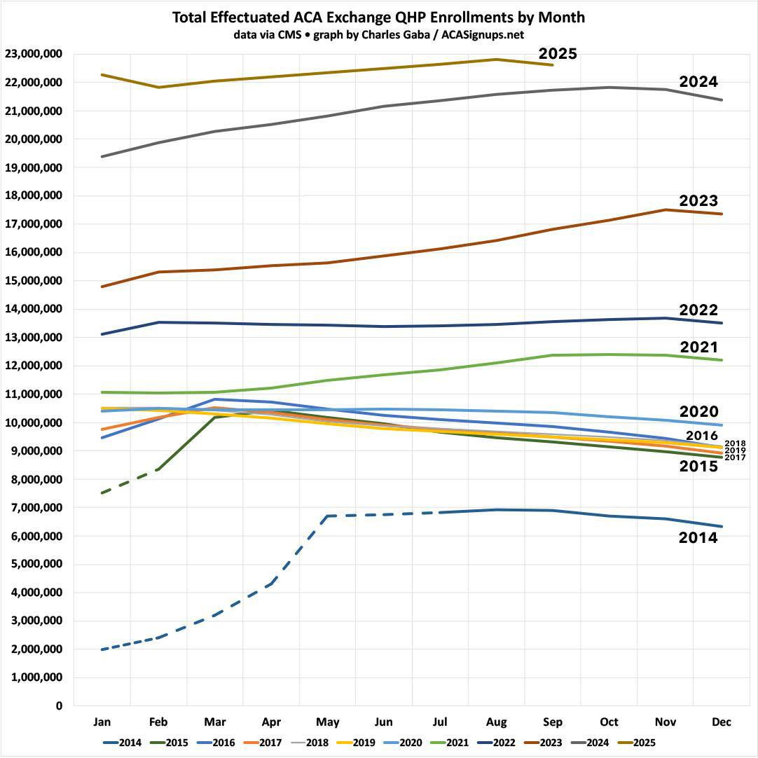 Up to half the ~19.6 million renewing enrollees passively auto-renewed, meaning many didn’t find out how much their premiums skyrocketed until they received their January invoices, likely leading to many terminating their coverage before it even began.