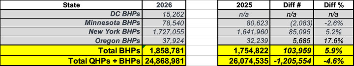 Yesterday the Centers for Medicare & Medicaid Services (CMS) published an updated 2026 Open Enrollment Period report, putting the grand (semi-final) total at 23 million Qualified Health Plan (QHP) selections.
