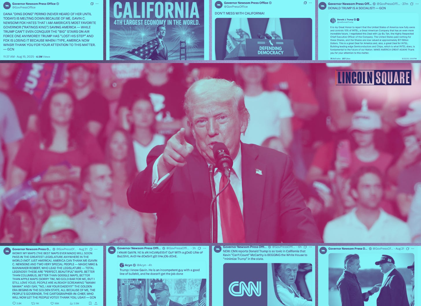 Say what you will about his West Coast aura, but he’s figured something out: You have to fight where the fight is. Newsom’s social media campaign is not about “elevating the discourse.” It’s about taking Trump’s carnival of idiocy and holding up a mirror so America can see just how grotesque the show really is.