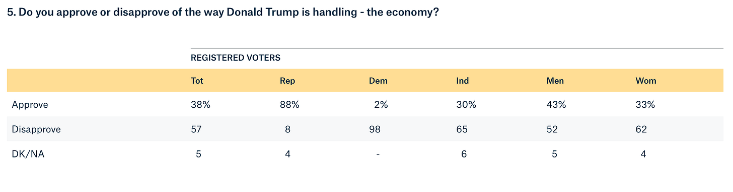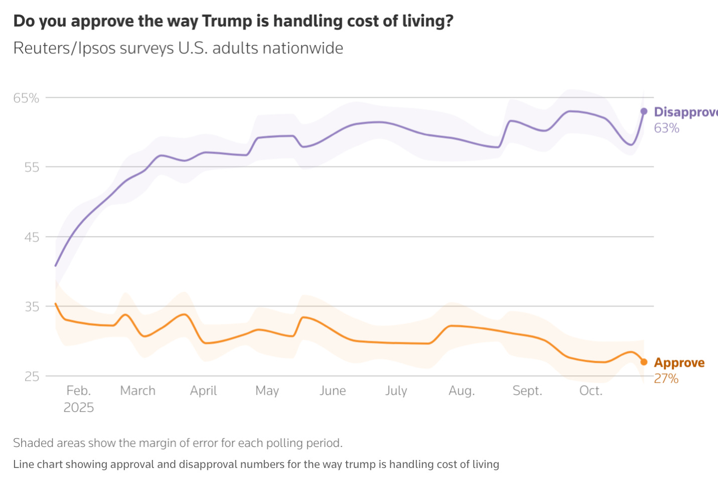 The same Reuters/Ipsos poll found a sharp spike in disapproval of Trump’s handling of the cost of living.