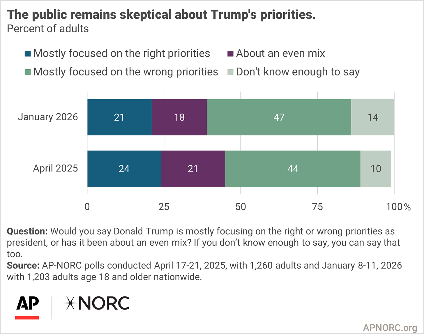 And ICE is just one of the many issues the American people have with Trump. According to a new AP-NORC poll, people don’t feel his priorities are in the right place.