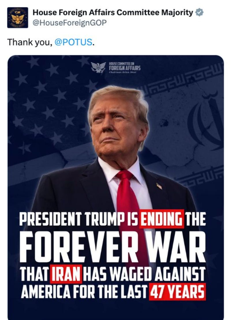 Another version, articulated by Republican House Committee is that Iran started a “forever war” with the 1979 revolution (don’t ask about U.S. engagement in Iran before 1979!)