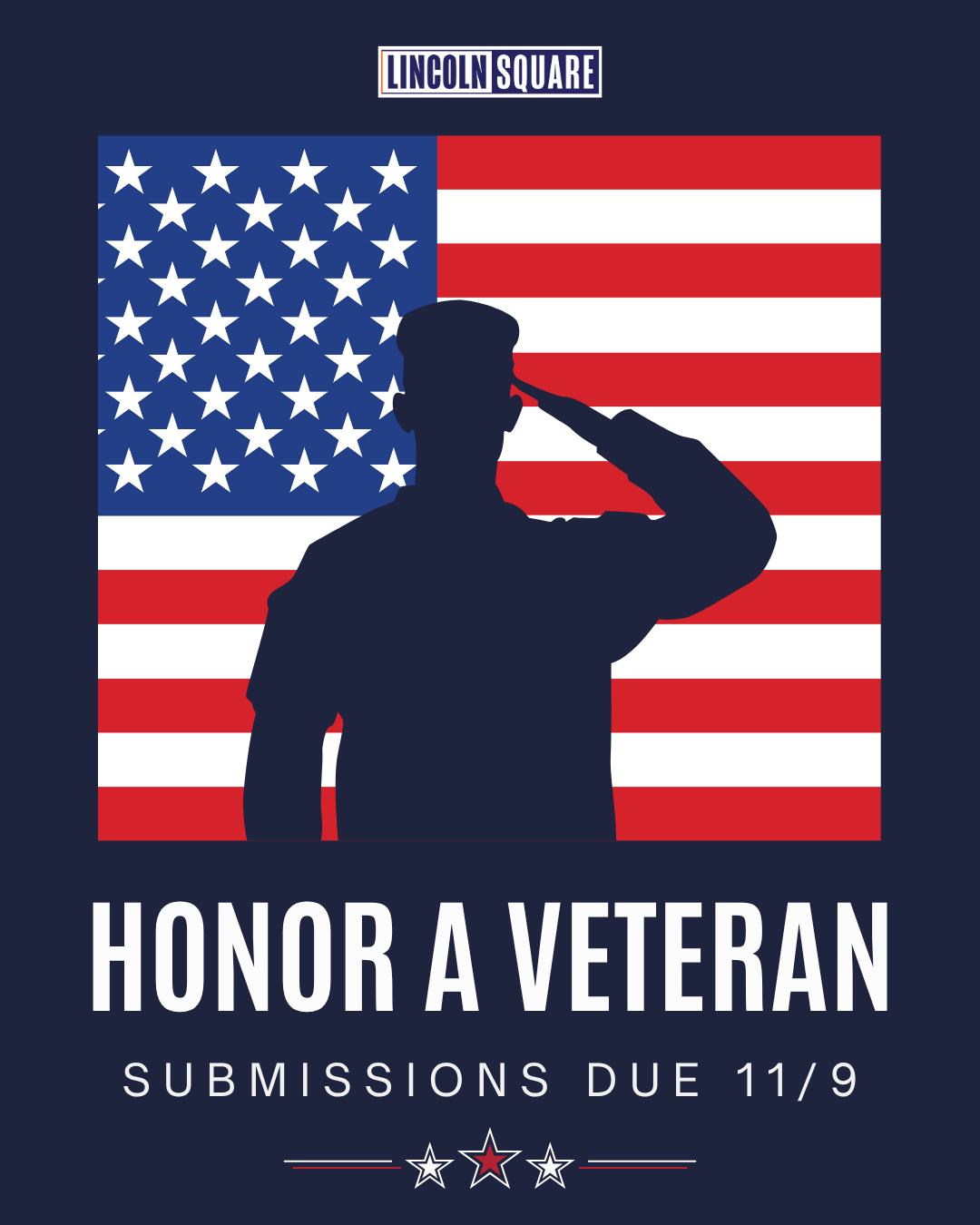 Help us honor a special veteran in your life — a family member, friend, or colleague — by submitting their name. We will publish these names across our streaming shows and on all Lincoln Square Media social platforms throughout Veterans Day week, reaching hundreds of thousands of people who want to share their appreciation.