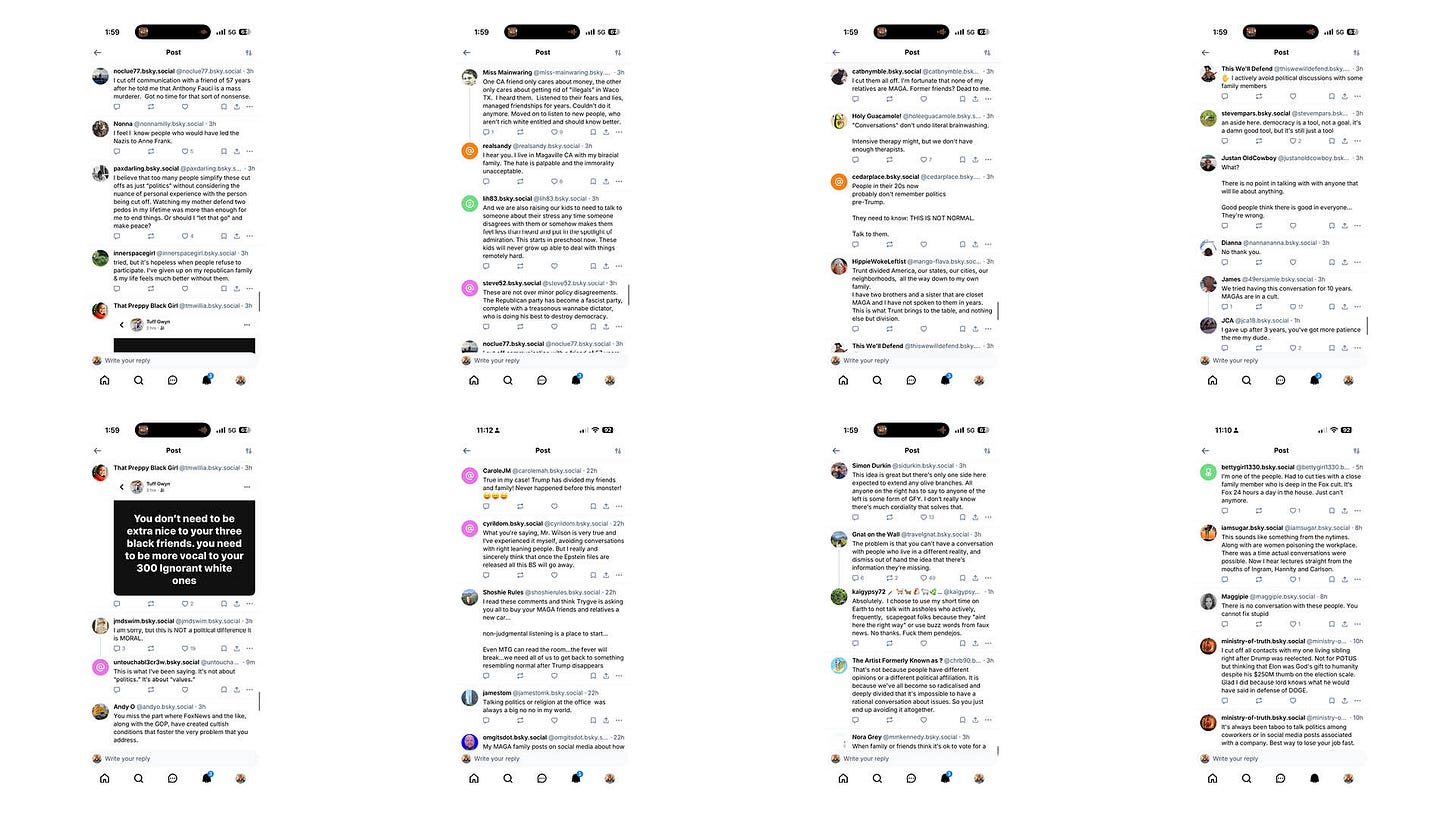 I must agree in large part with Stephen. I met with anger and screaming from my MAGA mother in the years before she died in 2023. One cannot speak rationally to an irrational cult member, it’s too threatening for them. They would rather burn the house down than listen. That’s what my mother did. She wouldn’t get her covid booster shots and she died from Covid while calling the hospice nurse a liar when told she had covid. MAGA and miserable to her death. I would rather use my energy getting democrats and independents out to vote against tyranny. It’s what I do.