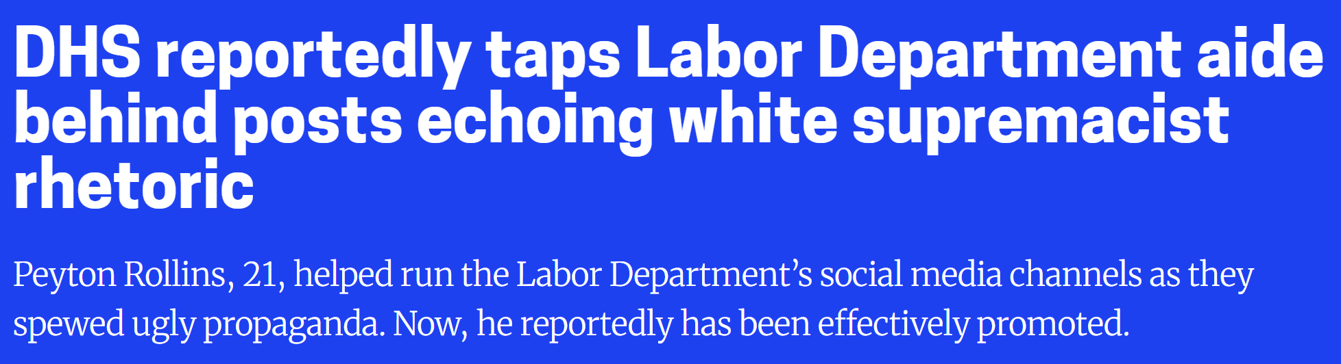 The “Promotion” of Extremism: While the government hunts down its critics, it is rewarding its own extremists. Peyton Rollins, the staffer recently removed from the Department of Labor for promoting white-nationalist imagery and fascist-themed posts, hasn’t been fired—he’s been moved to the DHS to lead their social media strategy now. We’ll be working harder to expose and counter these tactics by DHS to desensitize and radicalize Americans into either turning away or supporting their reign of terror on communities.